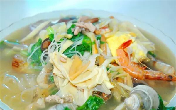 介绍:平阳炒粉干已有近千年历史,最出名的是五十丈粉干,以“细”、“韧”出名。炒粉干时,先将粉干放水龙头冲一下备用,然后准备好的肉丝、虾仁、香菇、鸡蛋、卷心菜等佐料进行翻炒,菜7分熟将粉干抖散放入锅便开盖直接放入细如发丝的“五十丈”粉干,同时需一手拿锅铲,一手拿筷子,快速地翻炒,不到一分钟便已炒好。炒好的“五十丈”粉干,夹一筷子,粉干没散;放到碗里,粉干也不粘筷;吃到嘴里,更是油而不腻。