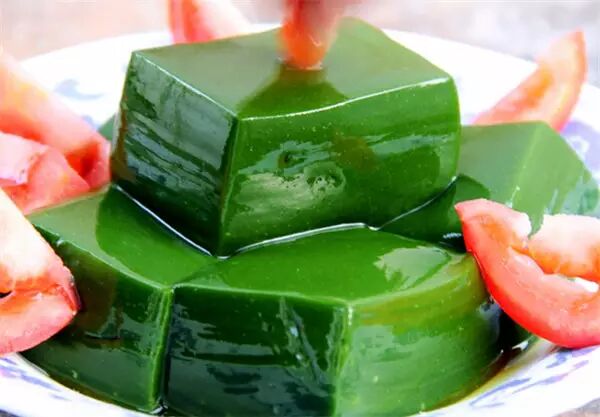 介绍:又称观音豆腐。原材料是一种叫豆腐柴的木本小灌木,多野生在溪流边沿等地,在离泗溪不远的小村庄均竹坑比较多。主要将豆腐柴叶子摘来洗净,取其汁,可以加适量水稀释,而后放入少许清凉的牙膏,搅匀,加盖,放置,待冷冻,随自己喜爱加些汤料即可食用。