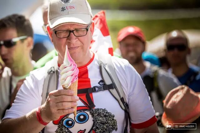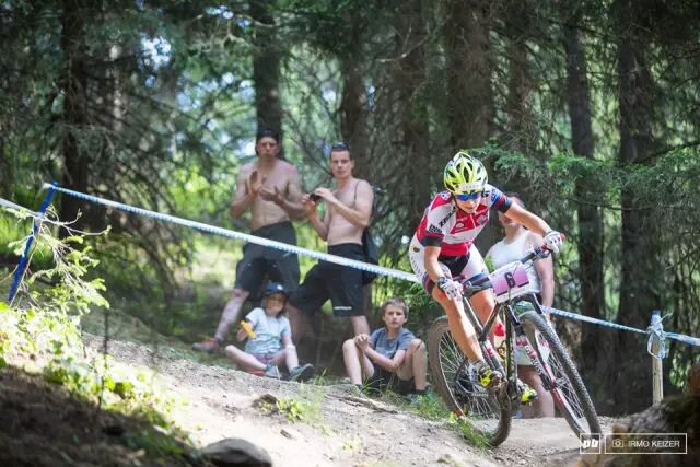 在瑞士站赛事中,恰好欧洲遭遇热浪侵袭之时。现场的气温超过了30摄氏度,这使得赛道非常干燥,直观来说是使场地尘土飞扬。主场作战的“泡面姐”约兰达·内芙自然受到现场观众的拥戴。连赢两场世界杯冠军的她被看高一线。不过,“泡面姐”只把她的火热状态维持在刚出发的一小段时间。虽然她开始的时候获得领先,但是酷热的天气让她的体能出现问题,她很快就被Gunn-Rita以及身穿彩虹衫的彭德雷尔追上,并且被甩开。她更是一度掉出了前十,几经挣扎后,最终以第四名完场。